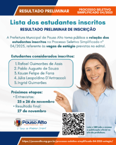 A Prefeitura de Pouso Alto, por meio da Secretaria Municipal