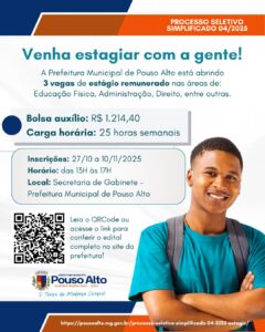 A Secretaria Municipal de Educação de Pouso Alto convida profissionais